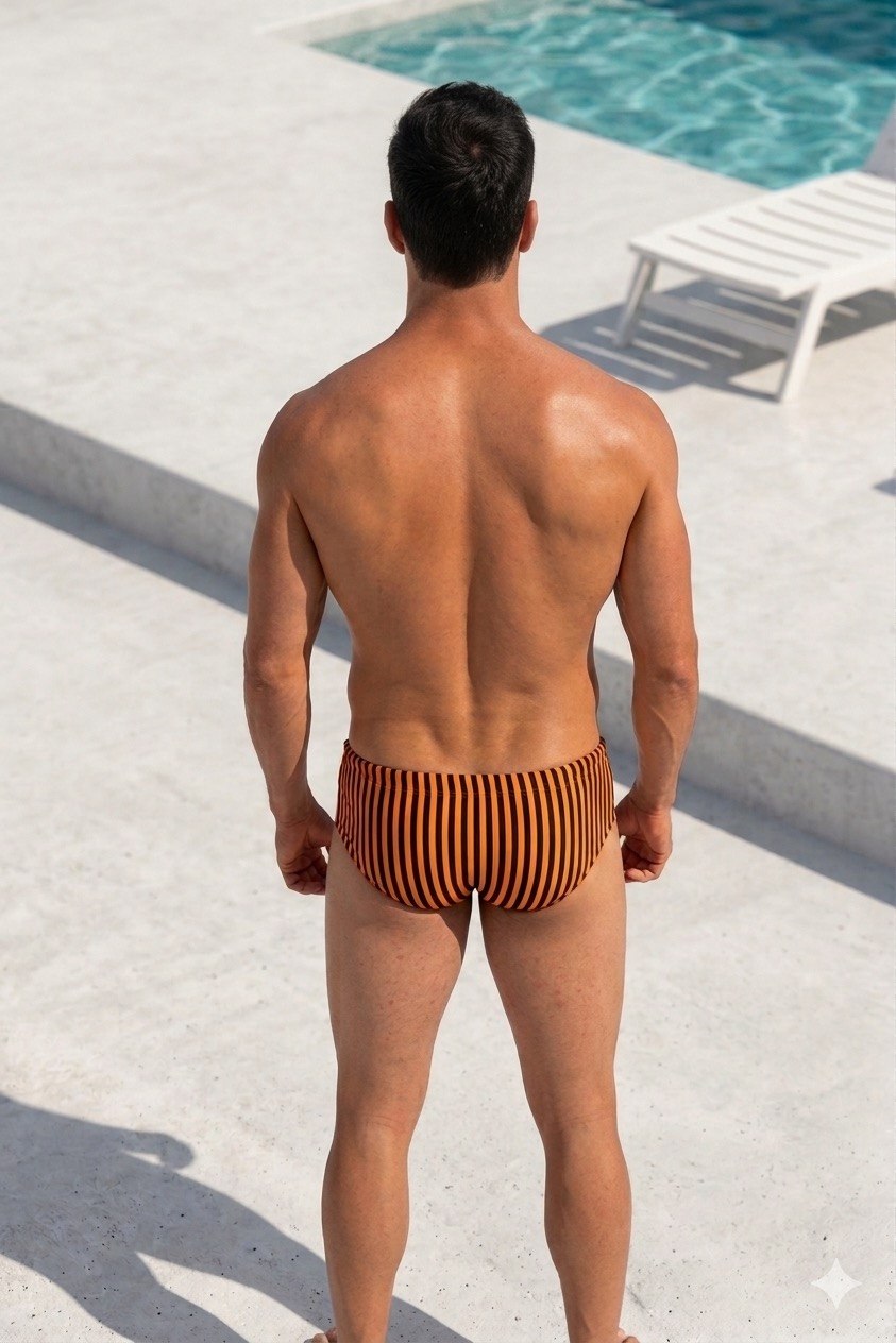 Este bañador hombre naranja es extremadamente versátil. Para un look de «beach club» impactante, combínalo con una polo negra o una camisa de lino en tonos tierra. Si prefieres un estilo más relajado, una camiseta blanca básica hará que el contraste del naranja y el negro sea el auténtico protagonista de tu outfit veraniego.