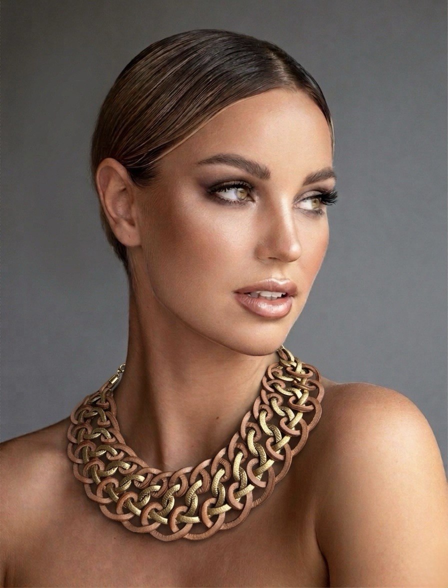 La sofisticación encuentra su forma definitiva en el Collar Trenza Egipto, una pieza que trasciende las estaciones y las tendencias. Esta joya es una declaración de moda sostenible inspirada en las estructuras geométricas y el refinamiento de las civilizaciones antiguas, adaptada a la mujer contemporánea que valora la exclusividad. Como parte de nuestra colección de joyería única de diseño y exclusiva, el modelo Egipto destaca por su tono nude natural, un color orgánico que aporta luminosidad y elegancia a cualquier conjunto, convirtiéndose en el centro de atención gracias a su volumen escultórico.