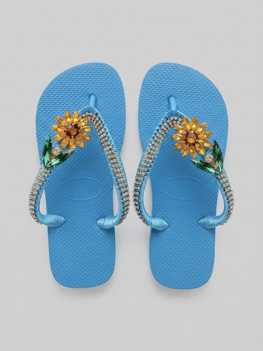 Havaiana Azul con Flor de Cristal: El Lujo Artesanal a tus Pies