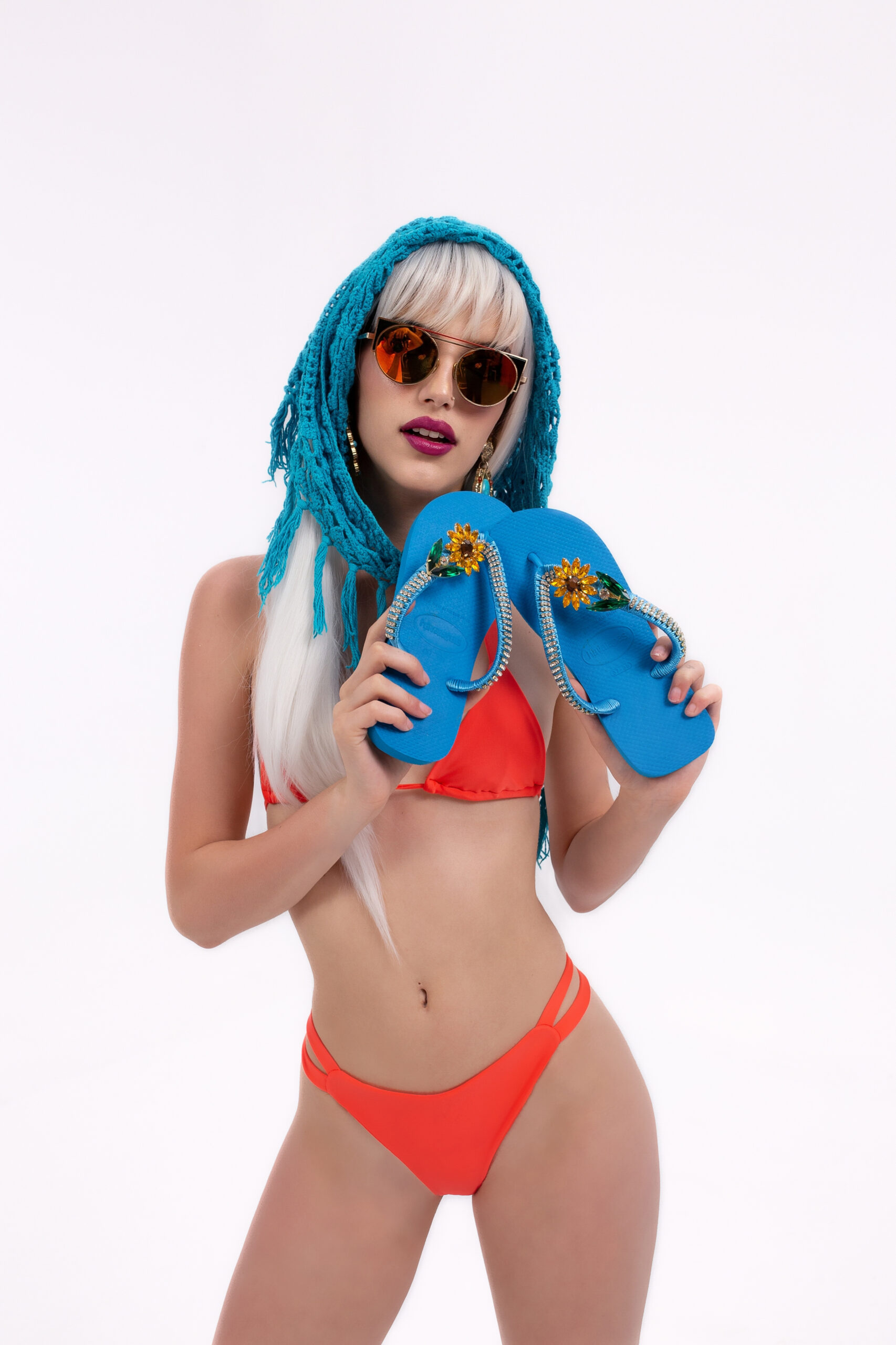 Havaiana Azul con Flor de Cristal: El Lujo también pisa la Arena